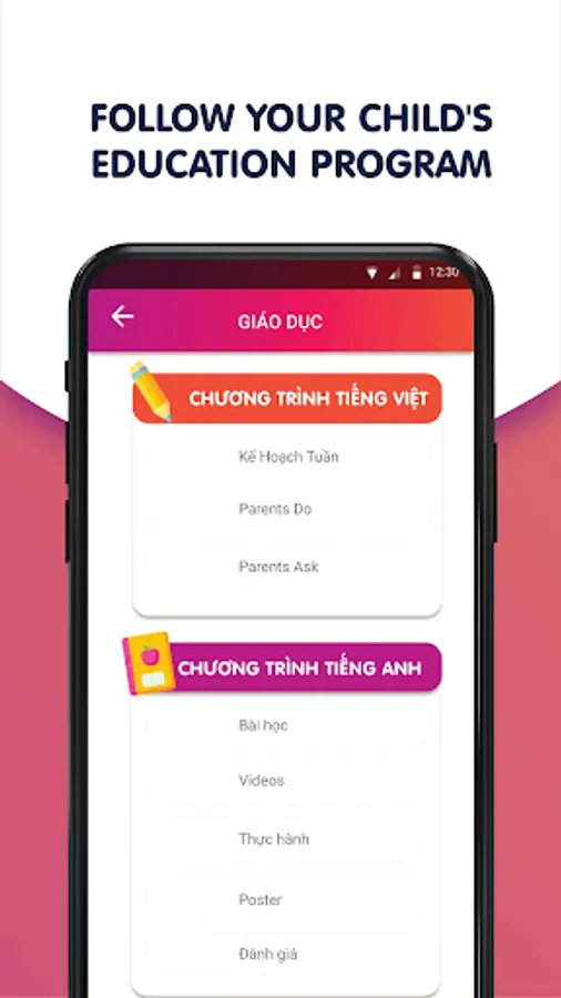 Besides, parents can monitor their children's study results through comments, assessments directly from teachers daily, monthly and quarterly.