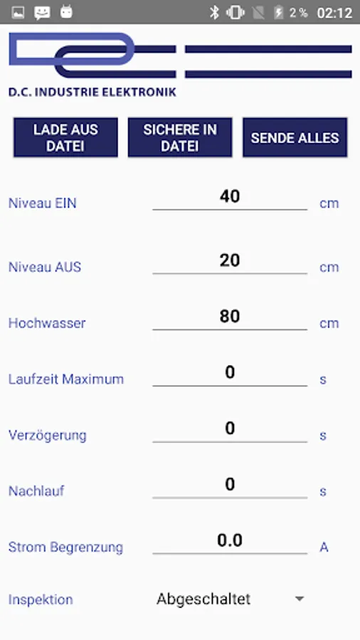 With this APP, the pump control of D. C. Industrie Elektronik can be remotely controlled via Bluetooth Low Energy.