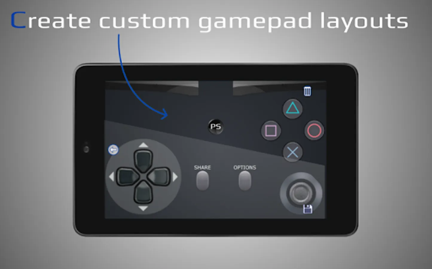PSPad offers you the possibility to use your smartphone as D-Shock controller for your PS. Do you need a second D-Shock gamepad for playing multiplayer games on your PS*, did your D-Shock gamepad break down and you need a quick replacement, do you want to use your Android controller on your PS? Well, then PSPad is the right app for you.