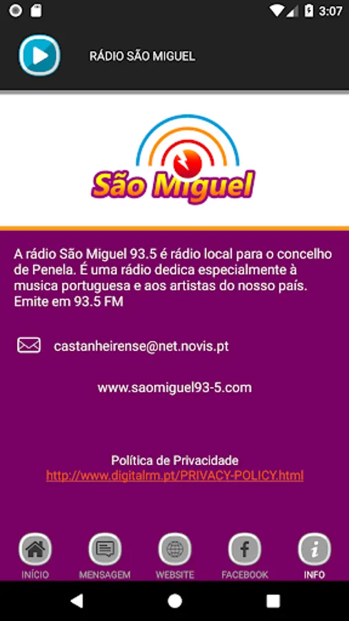 The St. Michael 93.5 radio is local radio for Penela county. It is a radio dedicated especially to the Portuguese music and artists of our country. Issues on 93.5 FM