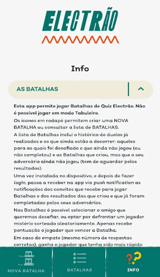 This mobile application allows Battles, which are duels between 2 players in which both answer the same 10 quiz questions.
