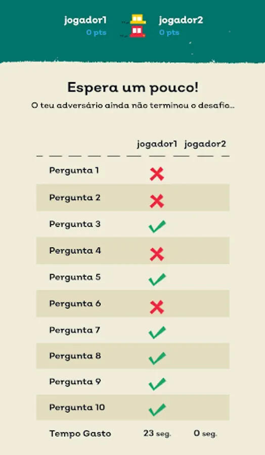 Both players are notified of the final outcome of the battle they have played and are given the list of right and wrong answers from both opponents.