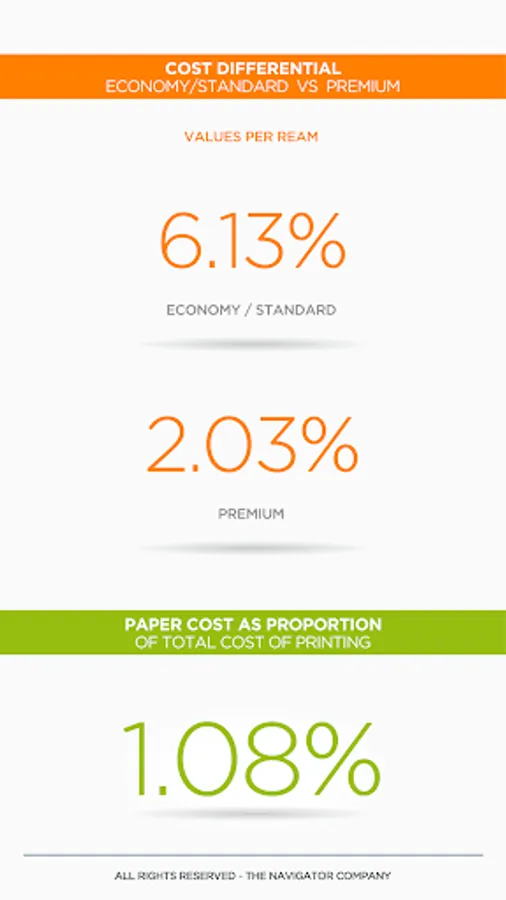 Find out what is the real impact of changing from Economy/Standard paper to a Premium paper, in the Total Cost of Printing.