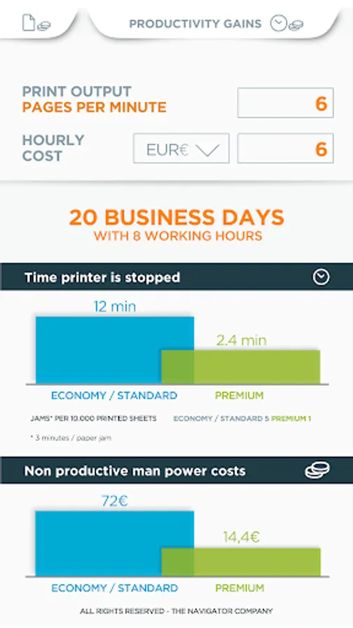 Confirm how much time and money you can gain by simple switching from an Economy/Standard paper to a Premium paper.