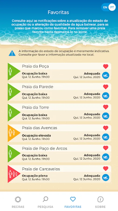 You can define your favorite beaches and get to know the water quality, awards awarded, existing equipment and services, as well as consult the latest bathing water quality analyses.
