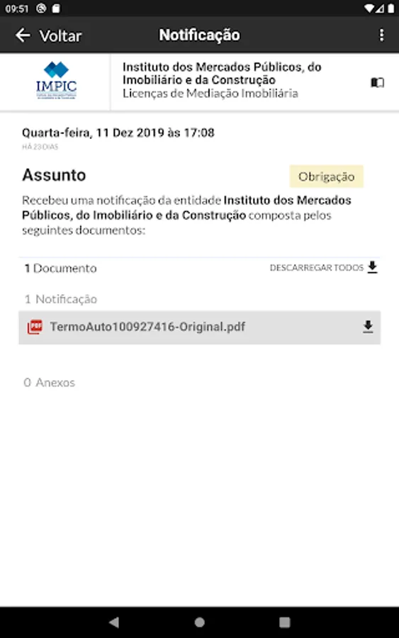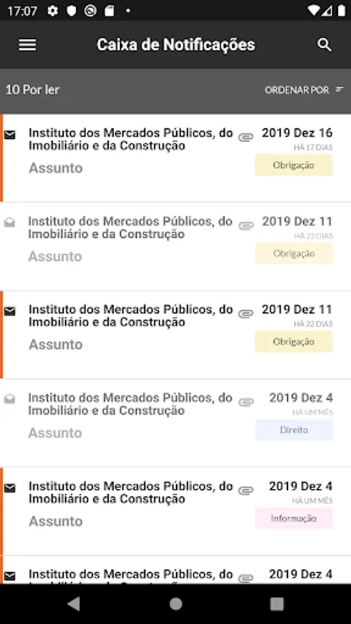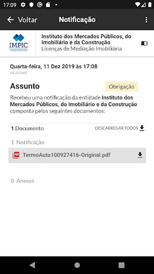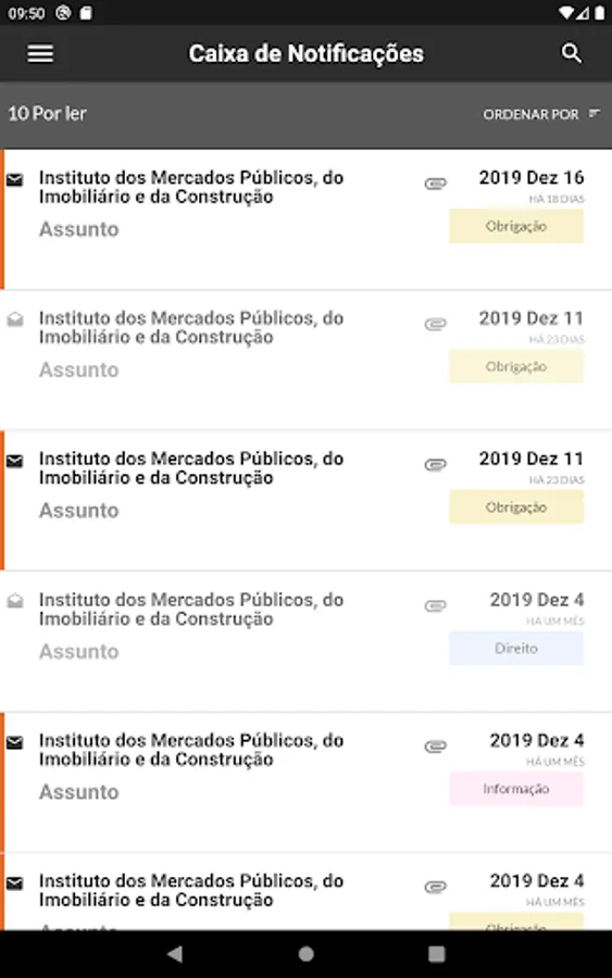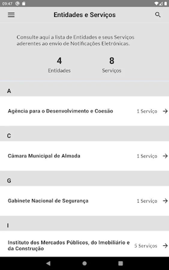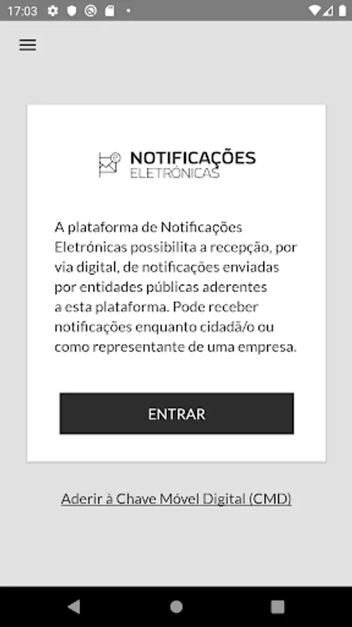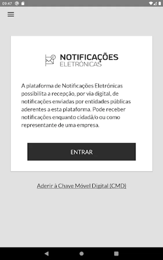 The Electronic Notifications APP allows access to notifications received within the scope of the Public Electronic Notification Service (SPNE) which was created by Law No. 9/2017 of March 3, Decree-Law 93/2017 of August 1 and Ordinance No. 365/2017 from December 7th.