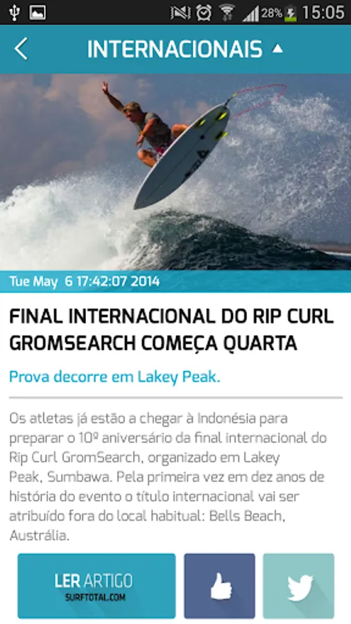 At Surftotal.com you can find the latest news from the World of Surf. News, diverse exclusive content, including National and International Surf Championships, surf reports, surf destinations, analysis of the latest technical surfing material on the market and interviews with the greatest surfers today.