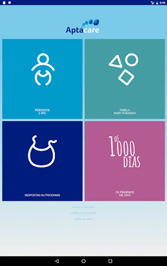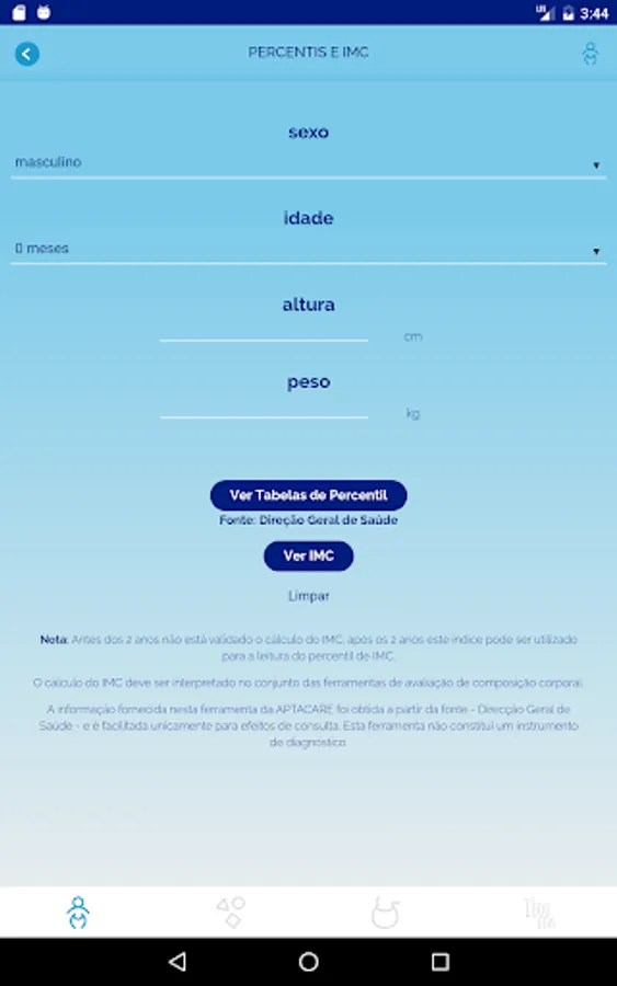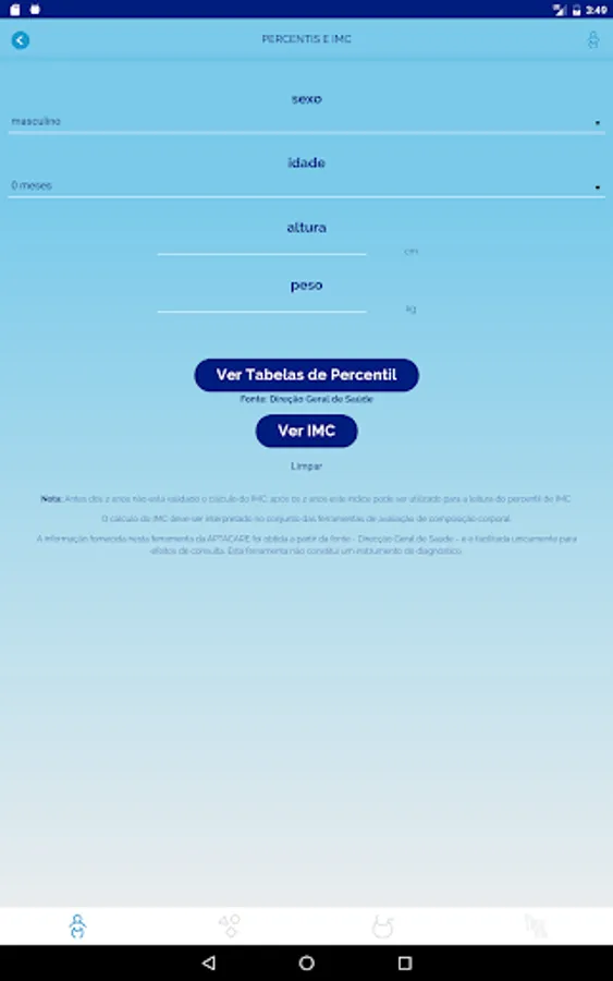 An app that brings together all the essential utilities to follow the normal steps of a pediatric consultation: percentiles and BMI calculation, Table Mary Sheridan, Nutritional Replies Aptamil and Blédina and First Thousand Days.