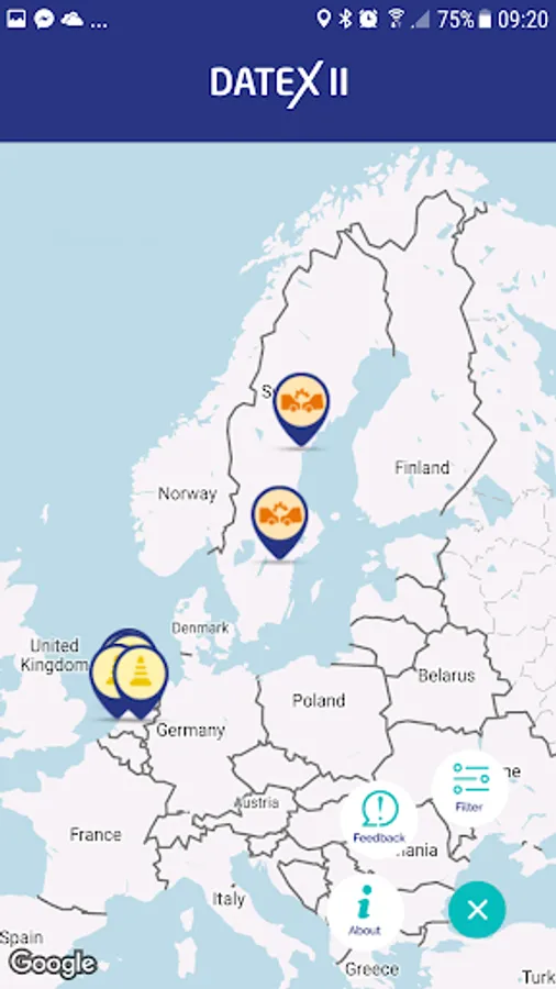 The app and live feed of information are made available for the DATEX II User Forum 2018 as a demonstrator and will cease to be operational a time after the event.