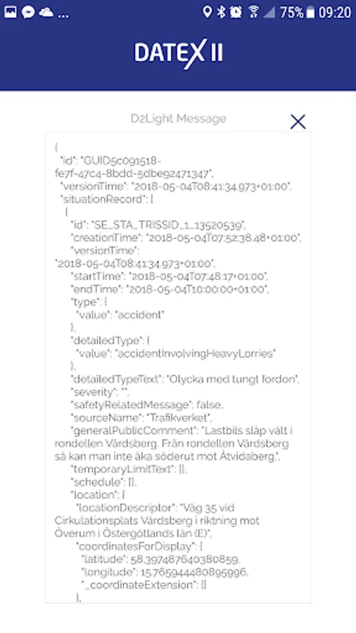 Proof-of-concept app for the D2Light (DATEX II Light) proposal of best practices for a lightweight exchange of dynamic road traffic information.
