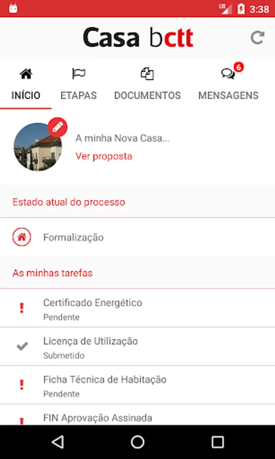 Mobile app for clients with mortgage proposal submitted to Banco CTT. The app is simple, functional and allows to accelerate the buying process due to its functionalities: tracks and organizes the several phases of the process, sends alters of missing documentation, gives notifications and checks the status of the requests.