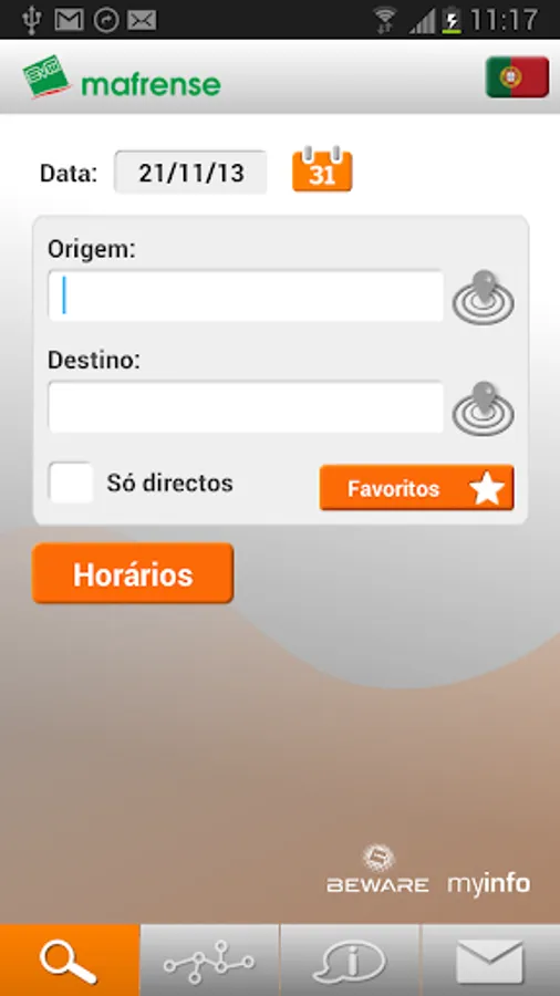 Selecting an origin and a destination, you will be able to check all the schedules of a specific day, as well to mark your choice as favourite so you can easily check it faster in the future.
