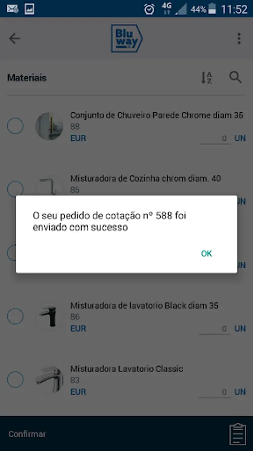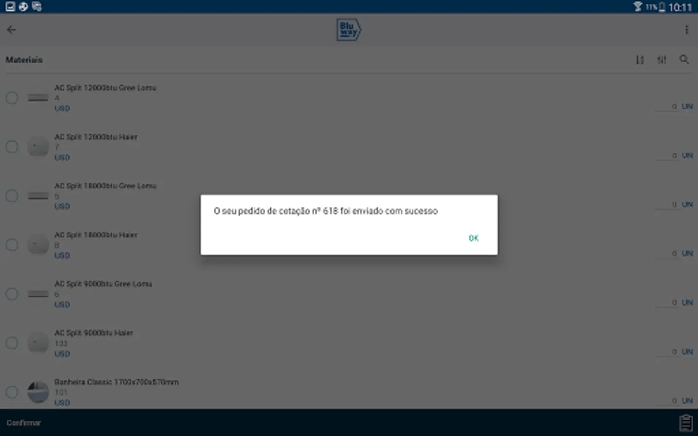 Ask the Bluway APP your updated quote for term and desired destination of the materials you chosed.