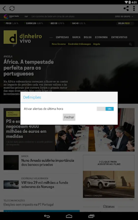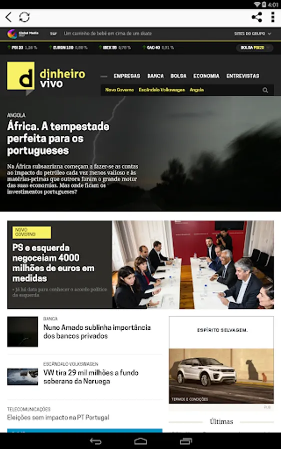 The businesses, big and small. The macro and micro economy. Who’s in charge. The markets. The ups and downs. The people that make it happen. Advertising, marketing and all the media. The leaders, gurus and managers . Dinheiro Vivo is now on your Android device.