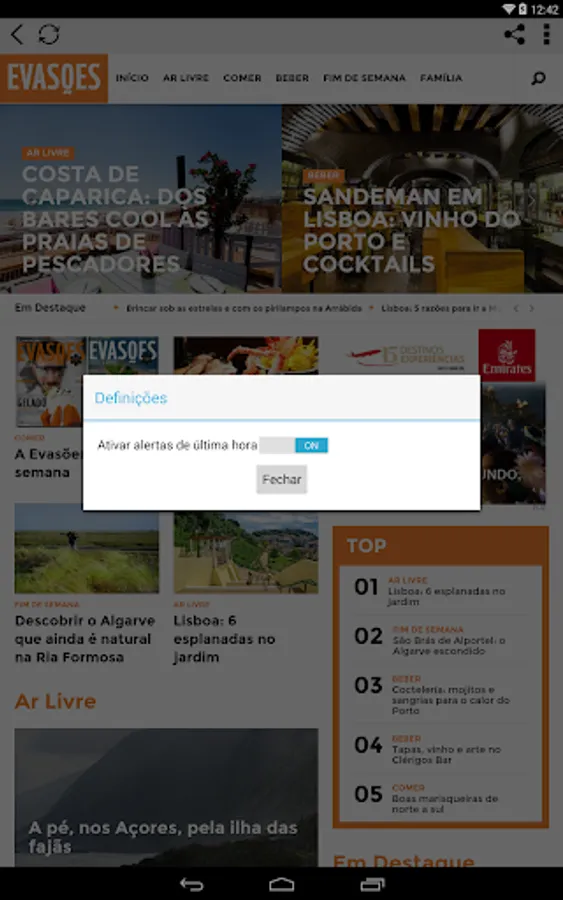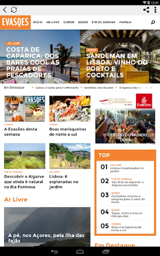 The Evasões is a magazine that publishes information on travel, tours, hotels, gastronomy, wine, tourism, culture and television, and other topics.