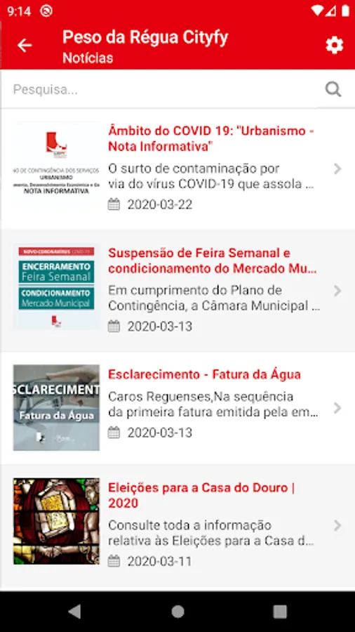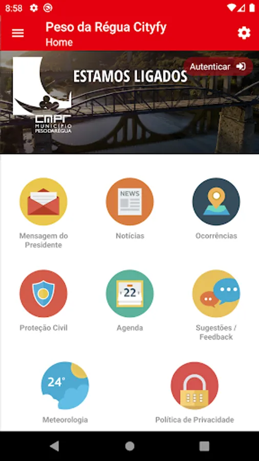In this application you can be informed of municipal and governmental alerts, follow county news, consult the schedule of events, connect to the app Visit Peso da Régua, report occurrences, among others.