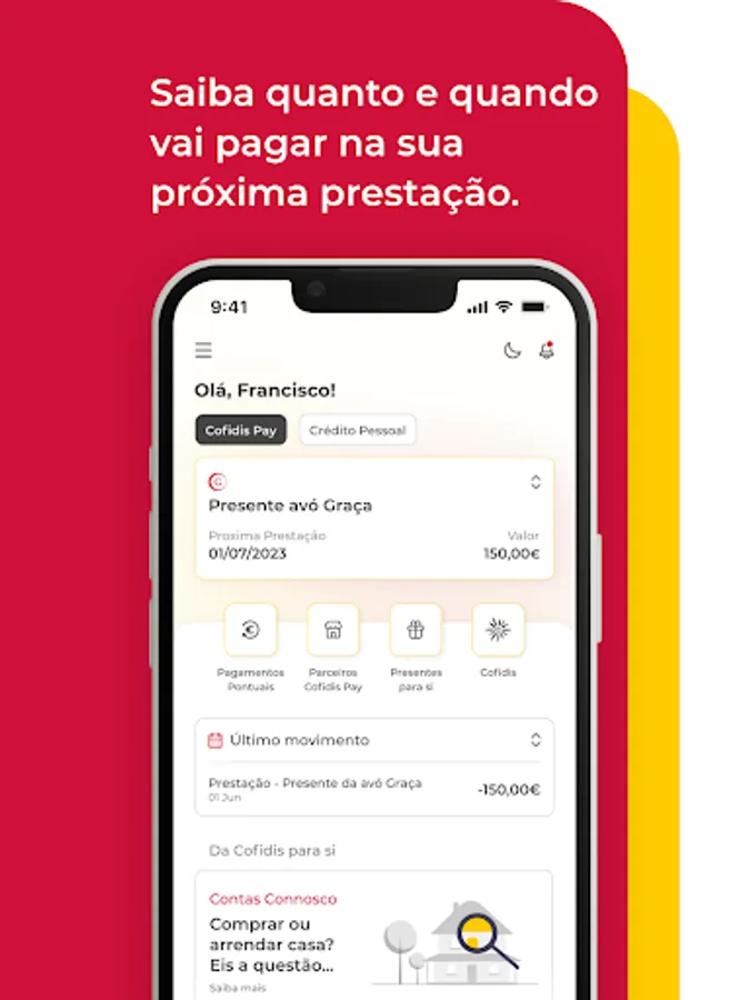 Welcome to the Cofidis App, where you can manage your Cofidis products, quickly and easily, and also have access to many other advantages. With a modern design and an intuitive interface, the Cofidis App is free and intended for anyone who wants to comfortably manage their day-to-day with Cofidis.