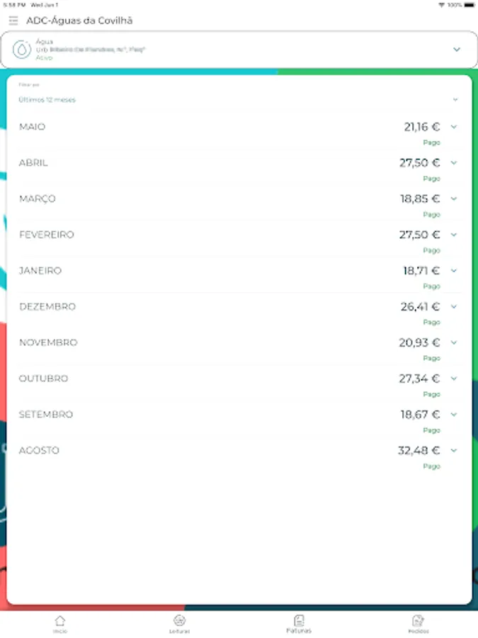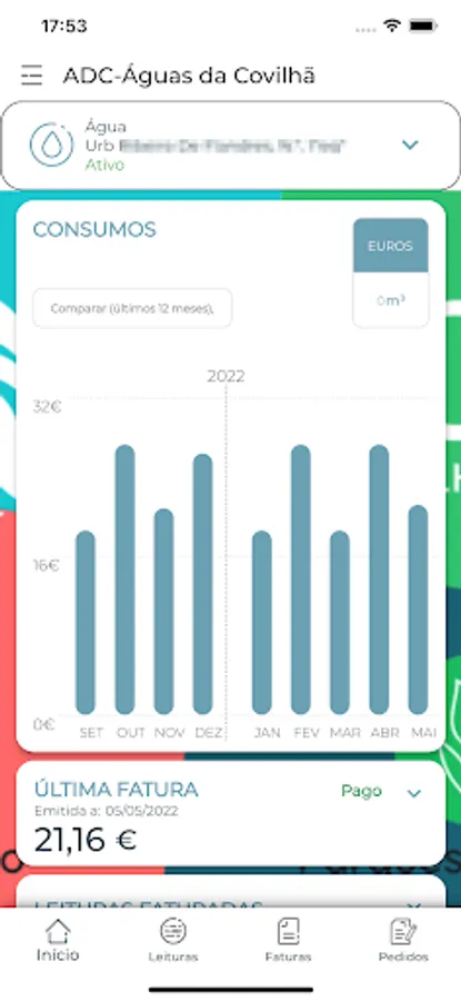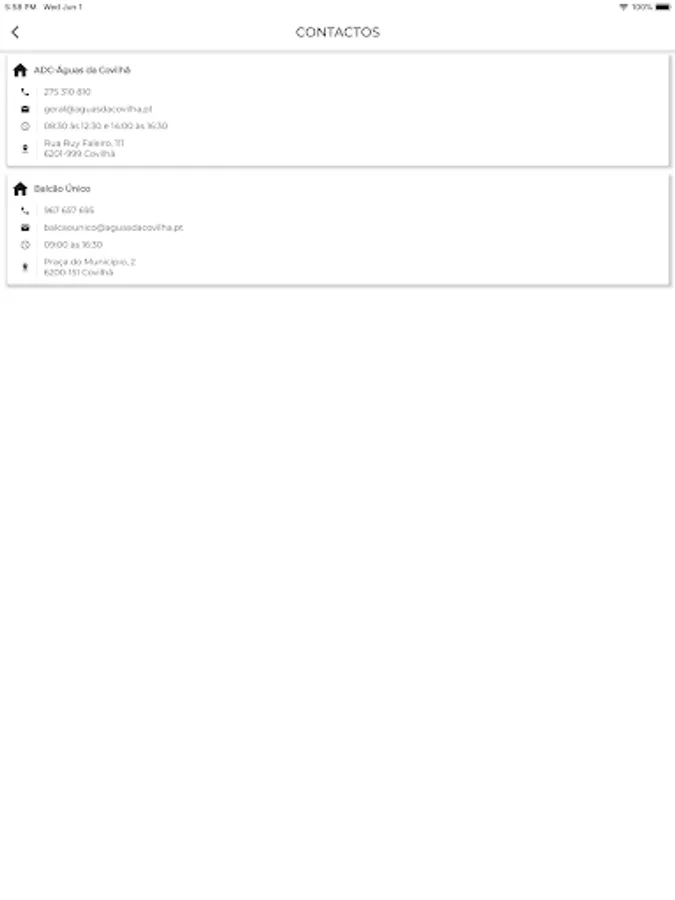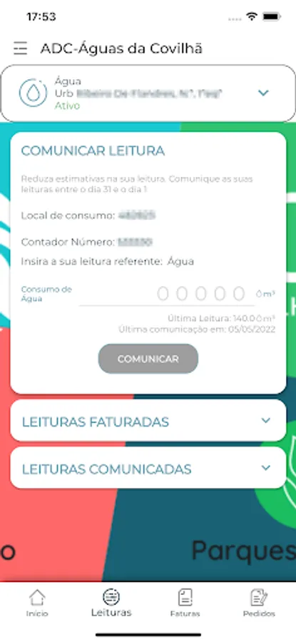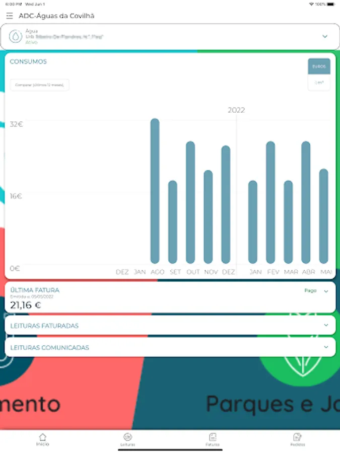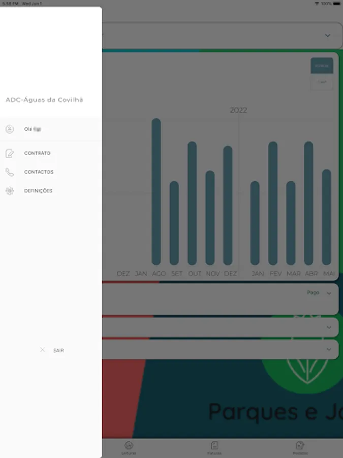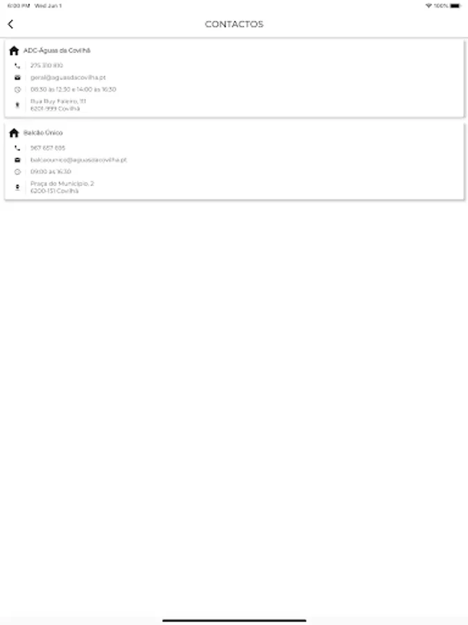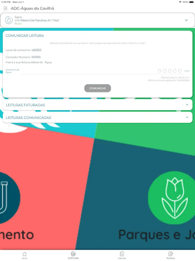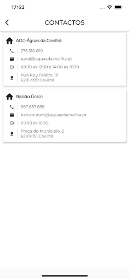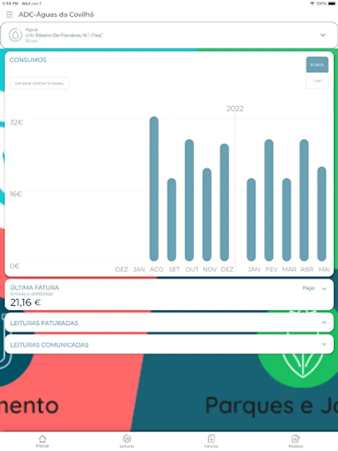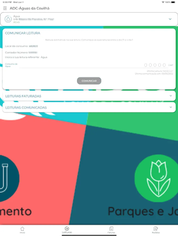 Application for mobile devices provided by ADC-Águas da Covilhã to its users to manage their water contracts and to manage and control their consumption, readings and payments.