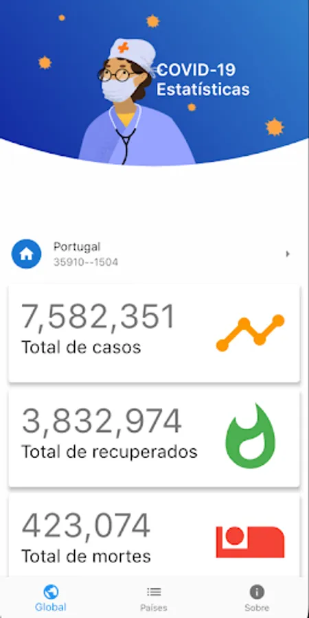 When starting the application you will come across world data, you can also enable the function Set as country of origin when searching for a country, when doing it on the Global page, above the data will appear the country you selected, just select it and it will immediately make available a page with the data of the respective country.