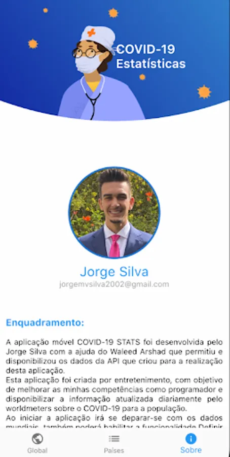 The Pandemia Statistics mobile application was developed by Jorge Silva with the help of Waleed Arshad who allowed and made available the API data he created for this application.