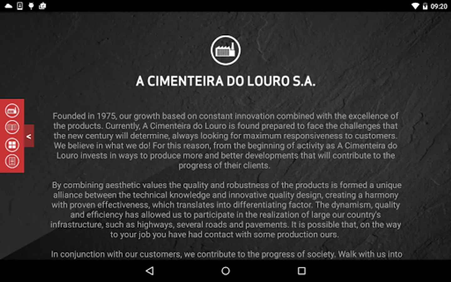This application allows the user to read and navigate through the diverse range of A Cimenteira do Louro's products.