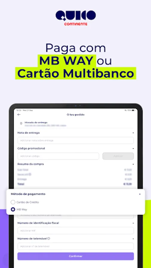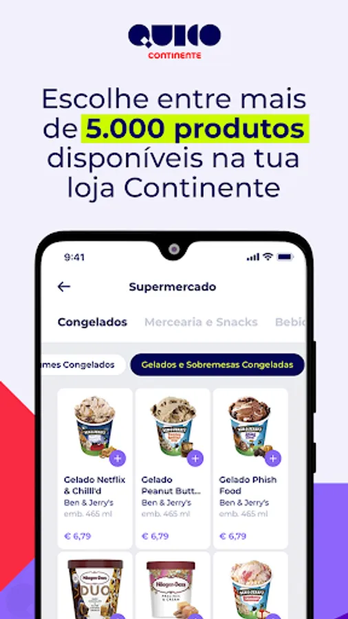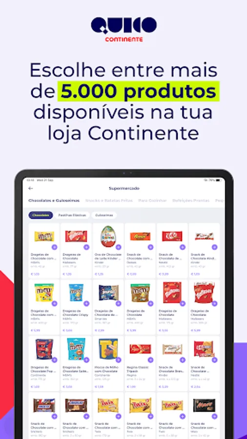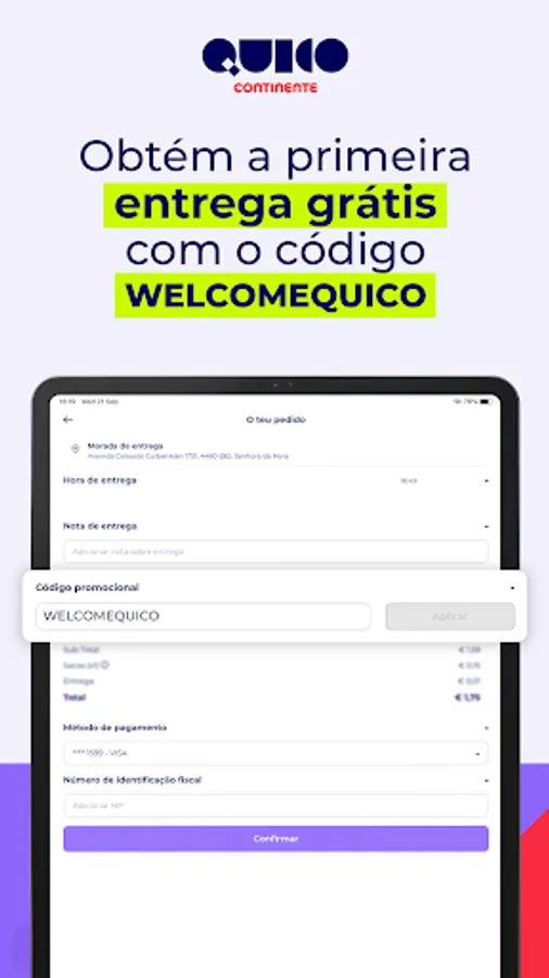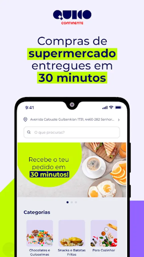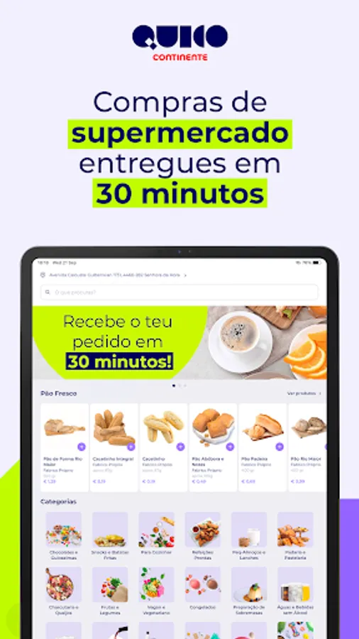 Continente supermarket purchases delivered to your home in less than 30 minutes. Install the App, place your order and Quico Continente delivers.