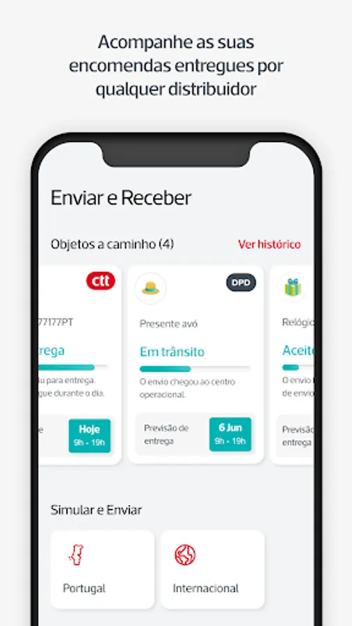 - Deliveries: manage and change express and mail orders with the chance of following CTT objects and other operators in real time.