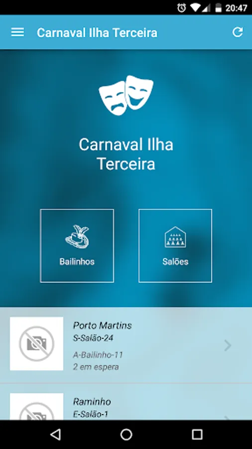 See information from bailinhos and lounges, locate where the lounge is bailinho or check the waiting list for a room.