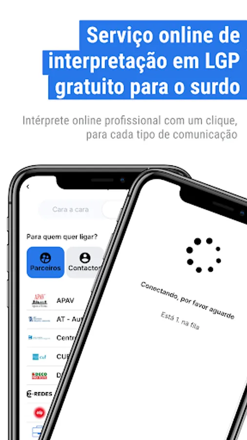 - Professional online interpretation in Portuguese Sign Language by professional interpreters via video call.