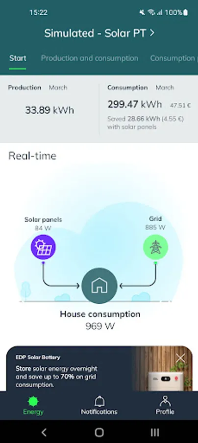 • Get real-time information about your household energy consumption and production and find out how much you are saving