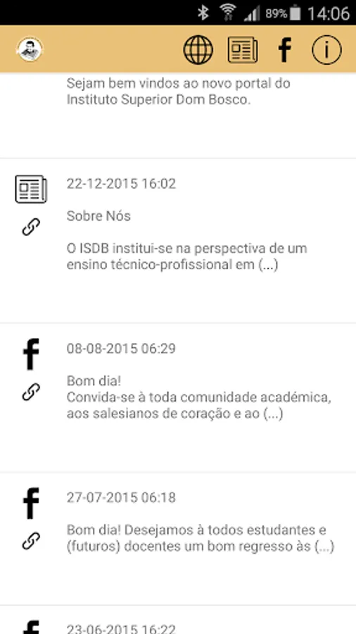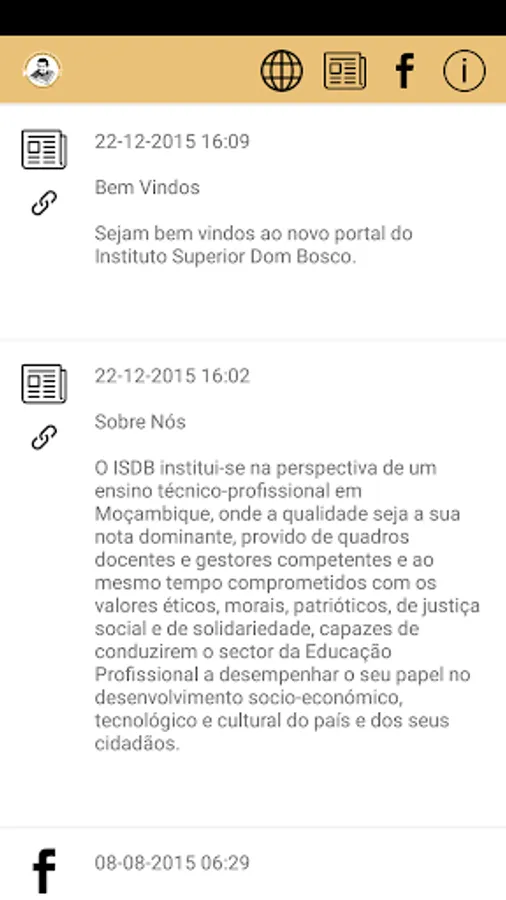 APP Info School allows access to information channels of the School Don Bosco, through the application can access the latest news published on Facebook and its Virtual Learning Environment.