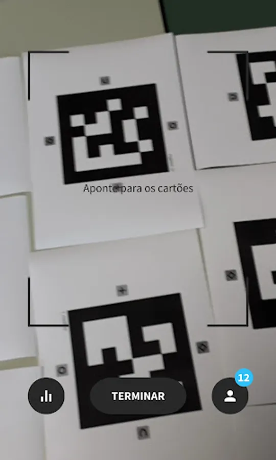 The QuizEV Scanner allows the teacher to launch quizzes on the Escola Virtual platform and collect the students' answers, without needing any mobile device other than the teacher's cell phone or tablet.