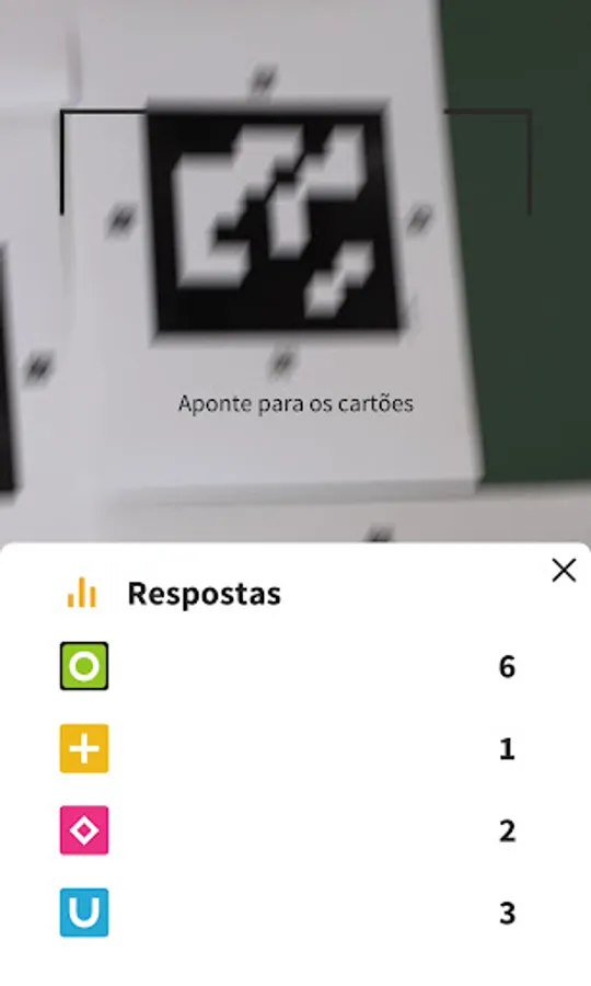 The teacher just needs to give each student an answer card, which he can download and print from the Escola Virtual platform and then launch a quiz at Escola Virtual, synchronize his mobile phone or tablet and, through his device's camera, capture the answers that students present by holding up the card.