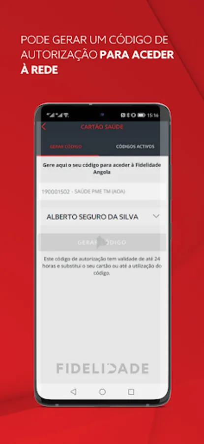 • Access to the Multicare digital health card: through the MyFidelidade App, you can use your Multicare card in digital format and generate an authorization code to access the Multicare network, valid for 24 hours.