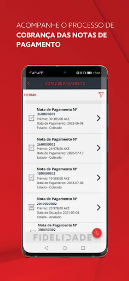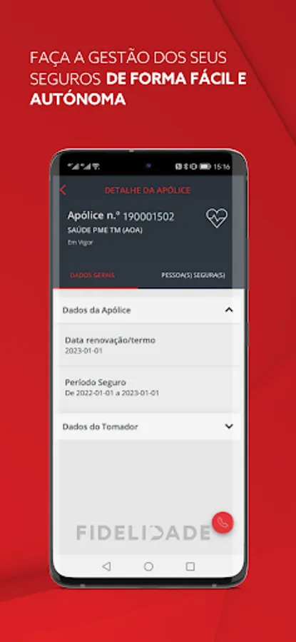 The MyFidelidade Angola App allows you to manage your Health policies, wherever and whenever you want, through access to the main features. You can also consult the documentation for the other branches.