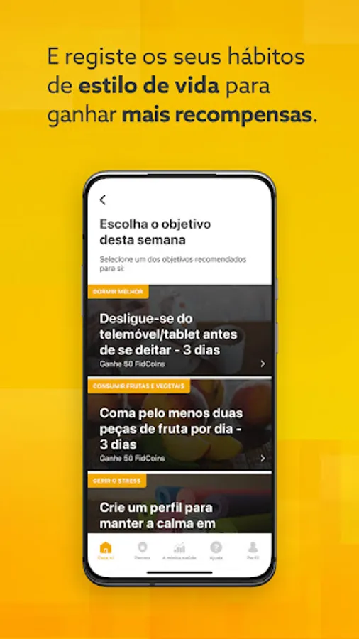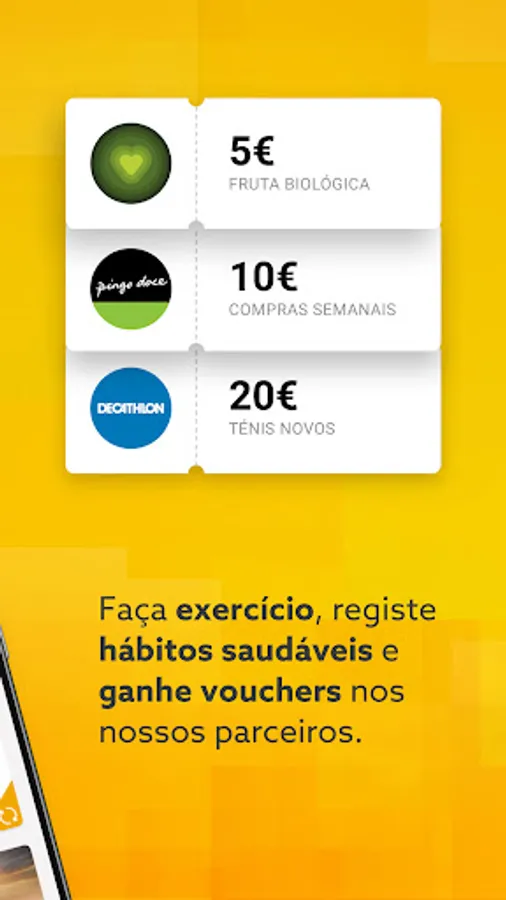 It's an incentive app for a healthy life. Achieve your weekly physical activity and lifestyle goals and earn FidCoins, which you can exchange at Loja Fidelidade for vouchers at our partners: Pingo Doce, Decathlon, Portuguese Pharmacies, Netflix, Spotify, Celeiro, Fnac, and much more.