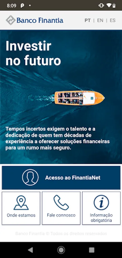 The FinantiaNet application is a platform of Banco Finantia's Private Banking service developed exclusively for its individual customers, as a mobile complement to the electronic banking portal www.finantianet.pt.