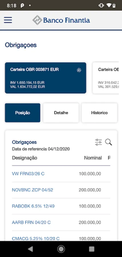 The FinantiaNet App will be constantly evolving and improving, with the aim of making your relationship with Banco Finantia even more agile, pleasant and productive. Currently, the operations and functionalities available are: