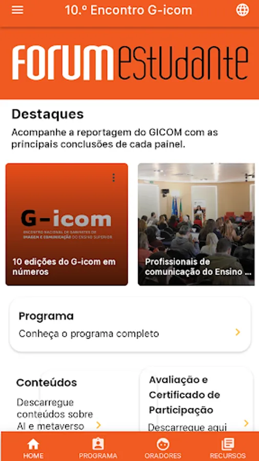 This application allows all participants to consult the program, speakers, resources and other materials related to the 10th National Meeting of Image and Communication Offices.