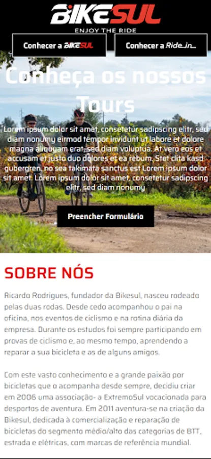 With this vast knowledge and the great passion for bicycles that has always accompanied him, he decided to create an association in 2006 - ExtremoSul - dedicated to adventure sports. In 2011, he ventured into the creation of Bikesul, dedicated to the sale and repair of bicycles in the medium/high segment of the MTB, road and electric categories, with world-renowned brands.