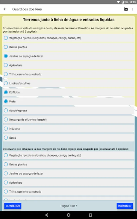 By completing the questionnaires in the place it is intended to collect environmental data, in order to evaluate the environmental state of the same.