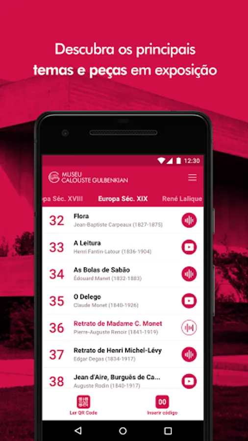 The application offers you additional information on the major works on display two collections of the Calouste Gulbenkian Museum - the collection gathered in life by Calouste Sarkis Gulbenkian and the most complete collection of Portuguese modern art. The application can be used inside and outside the museum.