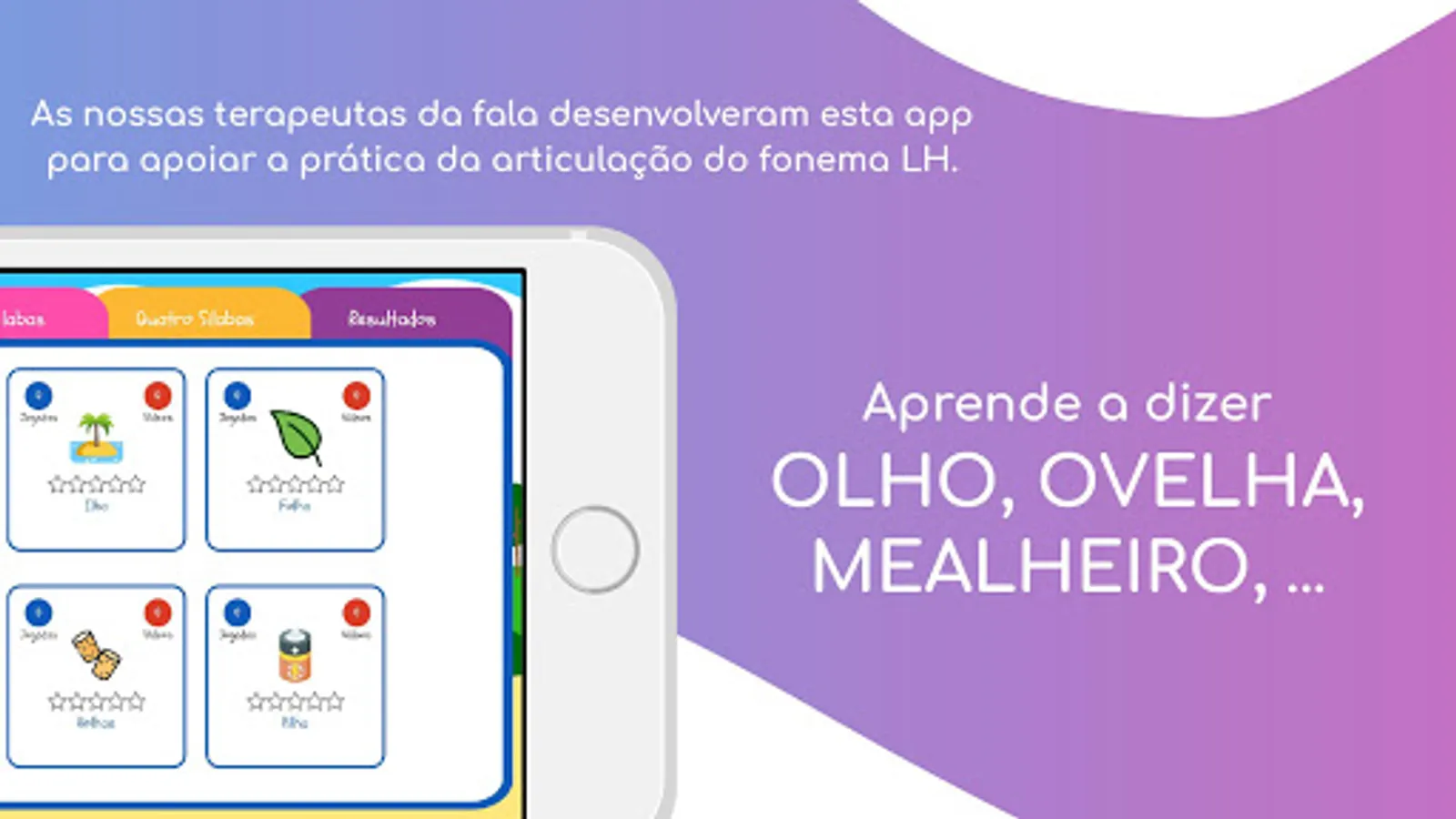 This app gives you an explanation of the correct movement of the tongue to produce the lh sound, as well as 33 images to practice the articulation of the LH phoneme in words.