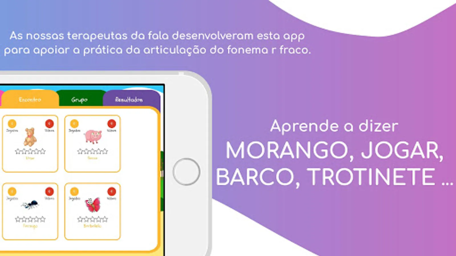 This app provides you with an explanation of the correct movement of the language to produce the r sound, as well as 60 images to practice the articulation of the phoneme / r / in words.