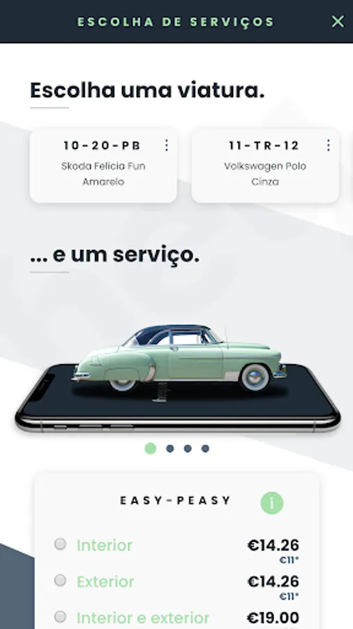 After creating a profile on HeyWash®, you can start using our service. Set the location where your car is and call HeyWasher, or alternatively, you can schedule the service at a date, time and location of your convenience. If you want an interior and exterior cleaning, we have several solutions for delivery of the keys of your car. Pay through the app for MB WAY or Ref. ATM. Simple.