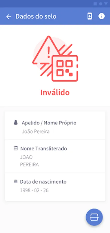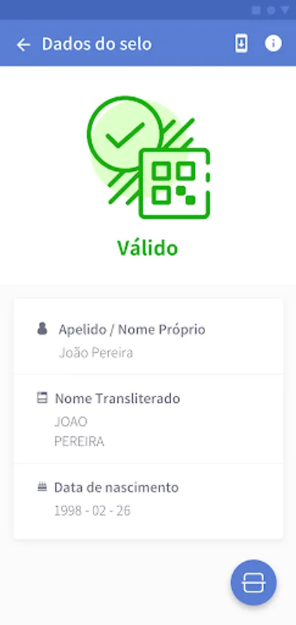 This application does not guarantee the security of the holder of the COVID Digital Certificate in relation to COVID-19, nor their identity, serving only to validate the authenticity of the certificate.