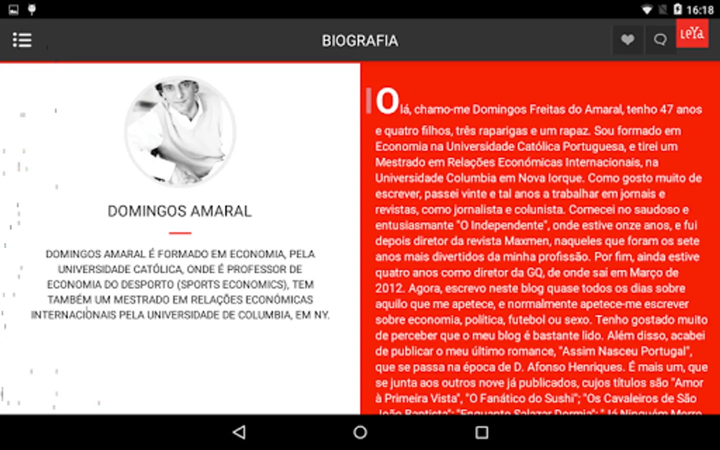 The app dedicated to Domingos Amaral intends to be YOUR app when you want to know the news around this award. One where access quickly and comfortably to the publishing catalog, know the latest news and the premium and their works and monitors their activity. In real time you can know how close is Domingos Amaral you.