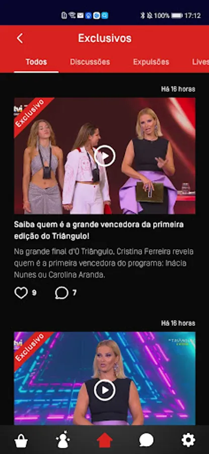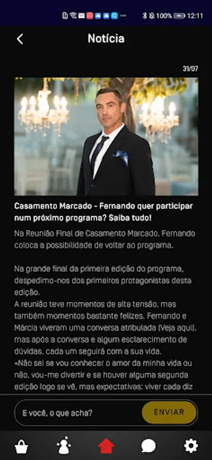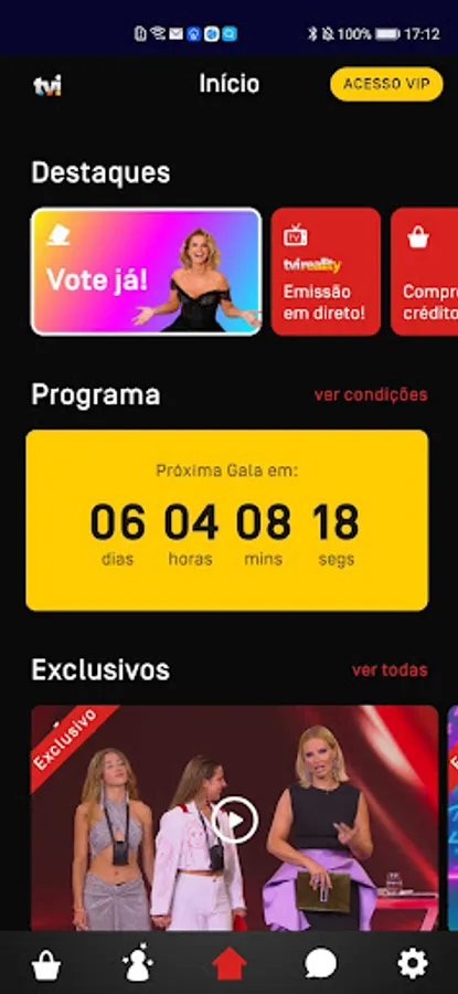 In the main area of the application you can access various highlights, which direct you to the various sections of the application, namely the news feed, polls, and live galas. You can also see information about all competitors and even talk to other users about the program through the chats created for these purposes!