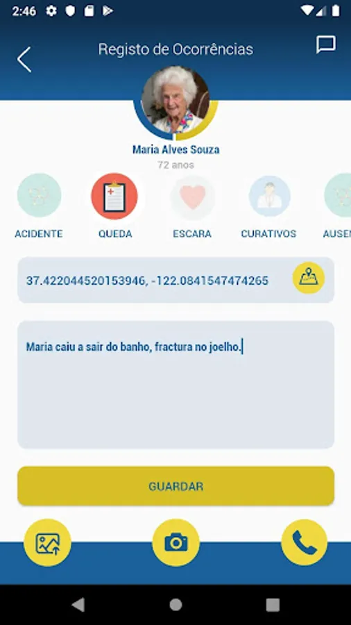 MyROI is a mobile application aimed to the elderly care institutions that allows the report of events related to the elderly care process. Allows the registration of all the detected events, in loco, during the process of service delivery. Combined with the web application, manageROI, allows the management of the day-to-day events, event validation, event forwarding and the export of the necessary files to fulfill the legal requirements.