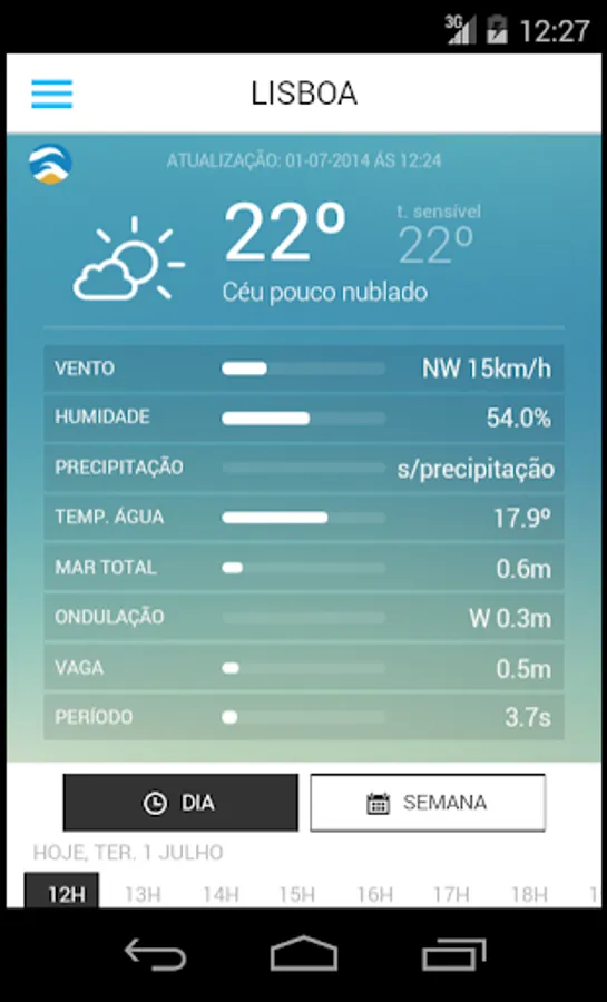 Weather @ IPMA is an application of the Portuguese Institute of Ocean and Atmosphere (IPMA), free to use, for mobile devices that provides status information of weather and sea to more than 300 cities in the Portuguese territory.